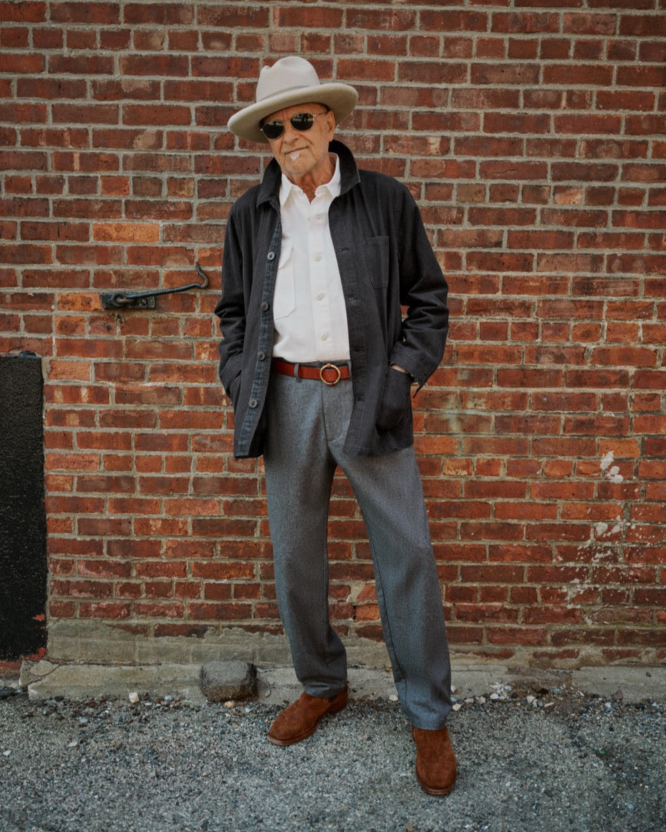We updated our best selling French Workman's Jacket in a colorful range of herringbone twills. The traditional workman’s jacket was designed in the late 1800s as a practical, protective layer for the French working class to wear over their clothes, complete with numerous patch pockets to hold tools and spare parts. We designed our workman’s jacket to serve as a piece of outerwear, as well as a stand-in for a sports-jacket in a pinch. This garment features three exterior patch pockets and one interior hidden pocket, as well as a herringbone-taped front placket with anchor-engraved buttons. The cuffs have buttons so they can be rolled up for a day's work or if the temperature calls for it.