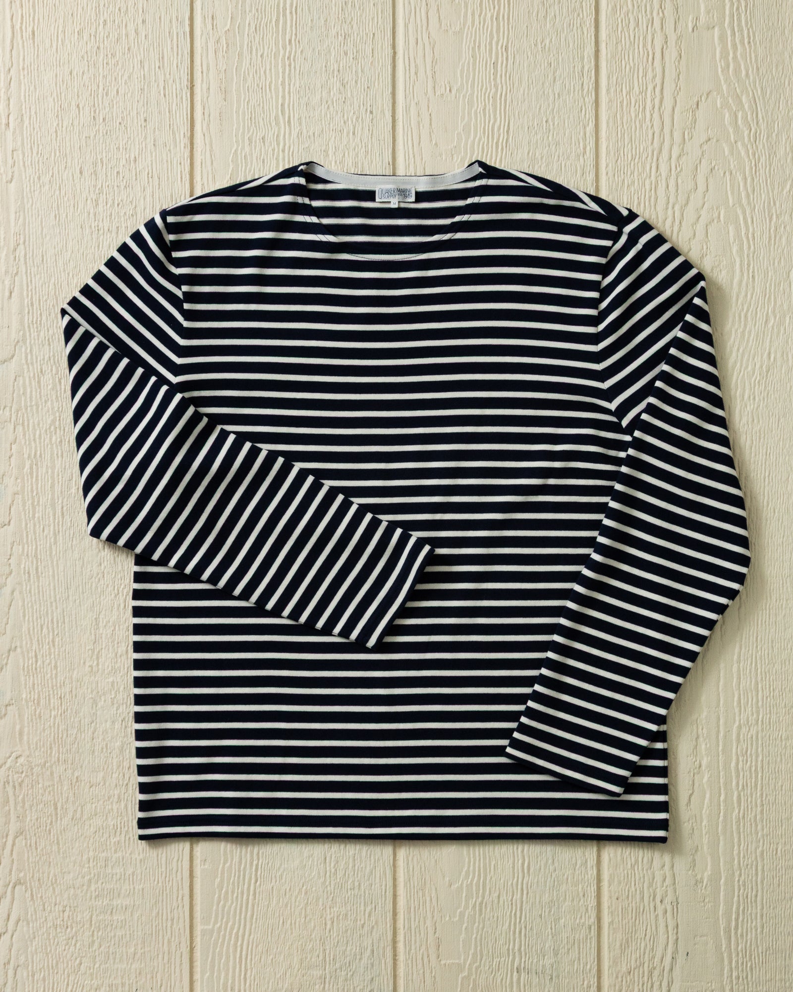 Our newly perfected boatneck tee, cut from mid-weight cotton jersey and inspired by the iconic nautical uniform. Layers well with just about anything, and stands well on its own, making it a year-round seaside staple.