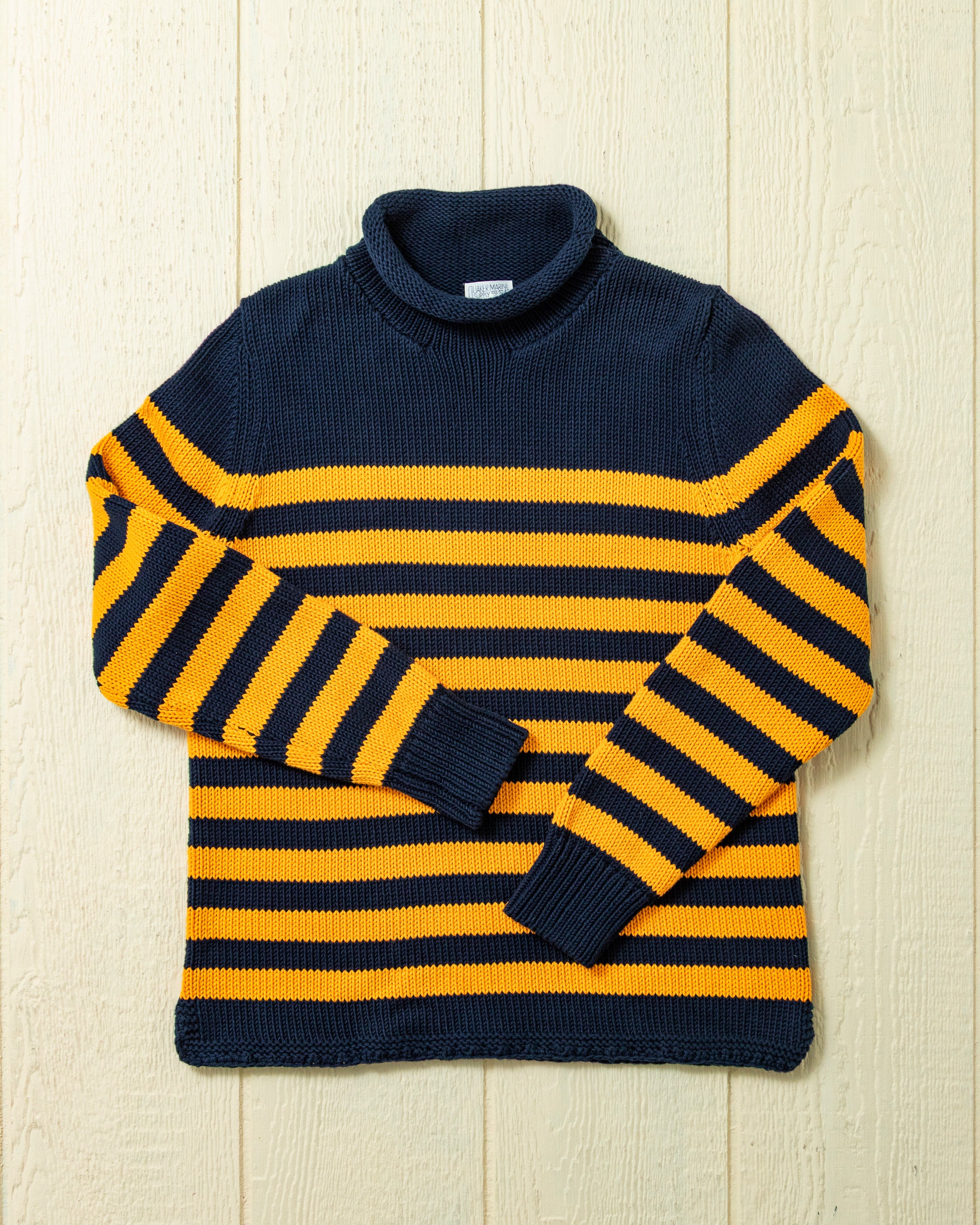 In the decades since, the sweater has become an iconic garment for the maritime and sea-loving world. We've updated it with soft, breathable cotton, but kept every other detail the same – the classic roll neck, a ribbed cuff, and functional side slits.
