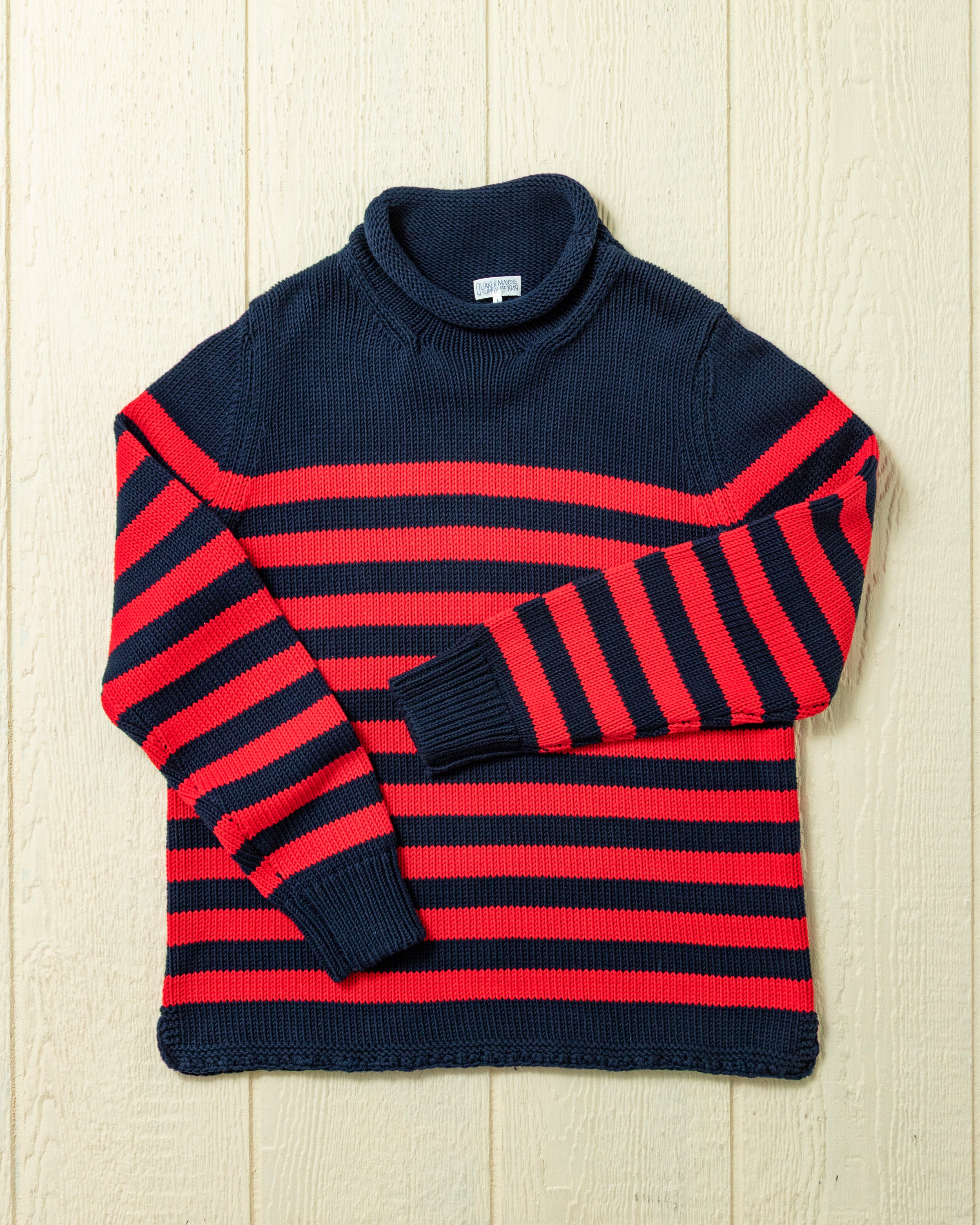 Time honored and sea-tested. We built the perfect fisherman's sweater, inspired by the traditional rollneck that has been a maritime classic for generations. When the salt water is spraying over the bow and the trade winds are gusting, you'll be glad you reached for the Fisherman's Sweater. Made in breathable cotton so you can still enjoy the afternoon sun.