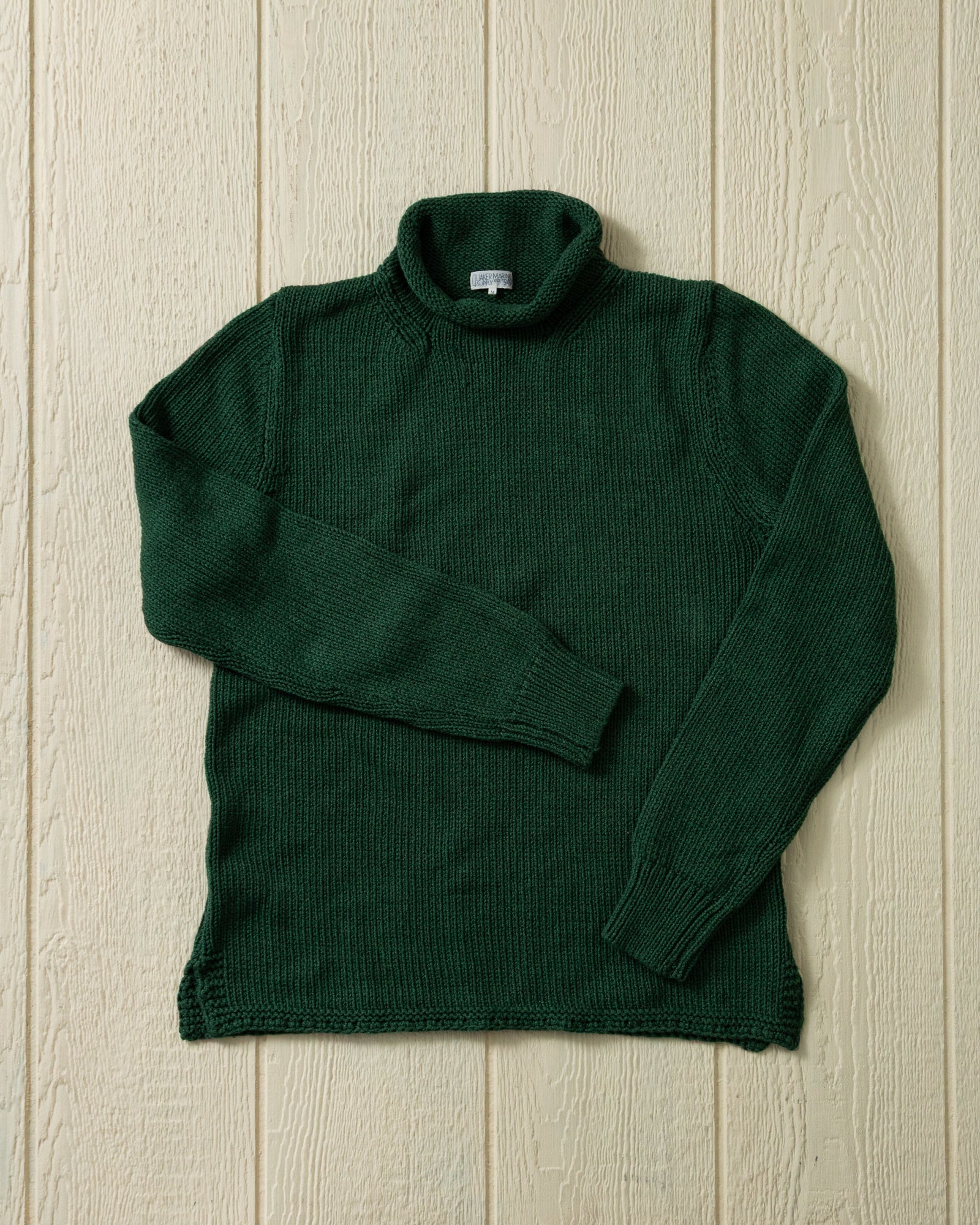 Originally hand knit for fishermen in the Irish Islands, it was adopted at the turn of the century by Ernest Shackleton and his crew, who took the knit rollneck all the way to the Antarctic. Later embraced by the British Navy, the sweater was refined and mass produced to outfit thousands during the First World War. It then found a new home with submariners, who embraced any woolen comfort they could get on their long voyages beneath the waves.