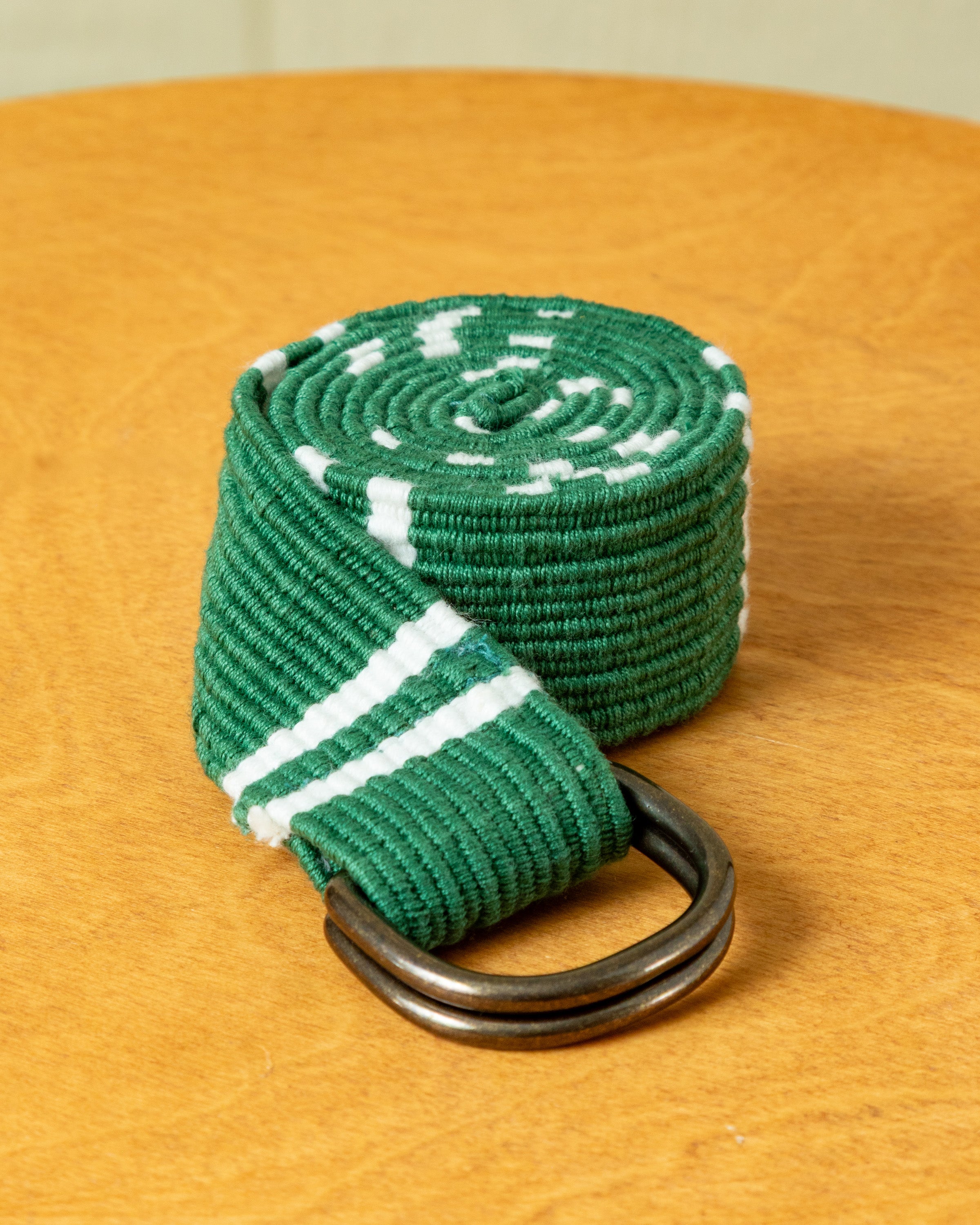 A handmade belt with real character. Woven on traditional looms in Guatemala, these regimental stripes have variations in color and pattern — no two are exactly alike, and that’s exactly the point. They're punchy enough to make a statement, but with the ease of a daily driver. Complete with solid brass d-ring hardware that will continue to wear in nicely for years to come.