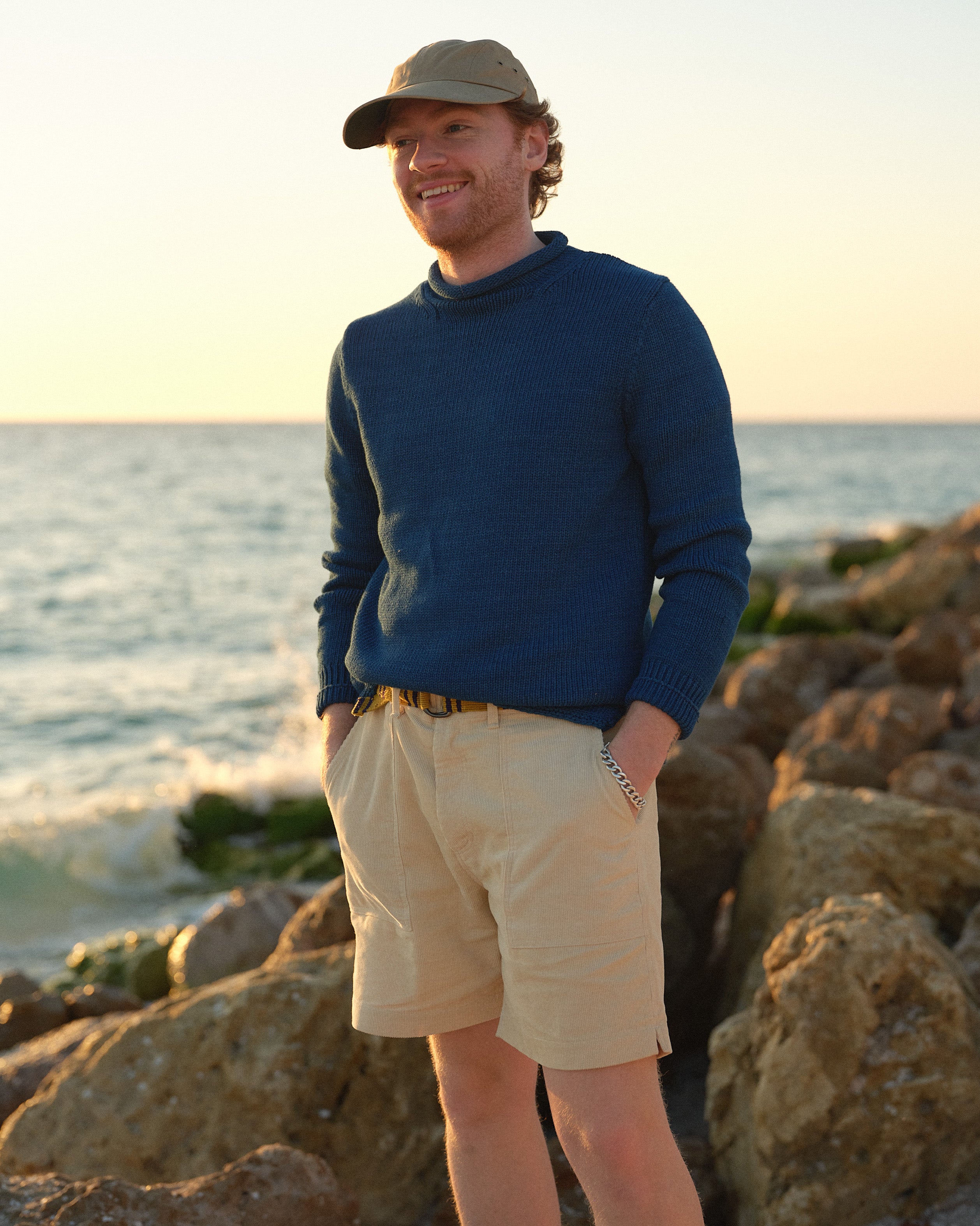 Time honored and sea-tested. We built the perfect fisherman's sweater, inspired by the traditional rollneck that has been a maritime classic for generations. When the salt water is spraying over the bow and the trade winds are gusting, you'll be glad you reached for the Fisherman's Sweater. Made in breathable cotton so you can still enjoy the afternoon sun.