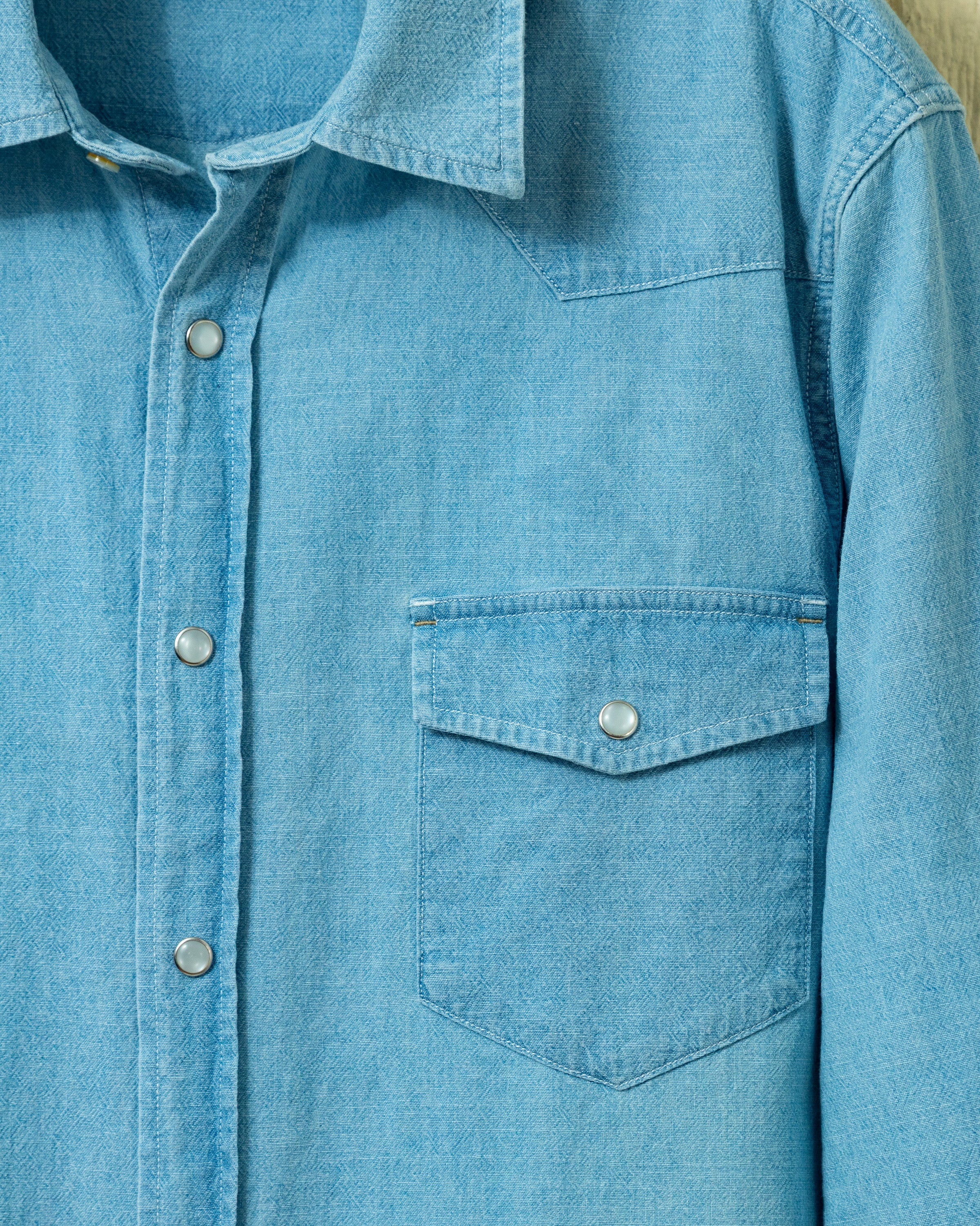An essential in every man's closet, our Western shirts scream classic cool. No longer relegated to dude ranches, this shirt can add some refined flare under a blazer, but we think it looks best on its own with our Ventura Corduroy pants or your favorite jeans (if you're brave enough for the Canadian tuxedo). We used mother of pearl snaps for a look that will never go out of style.