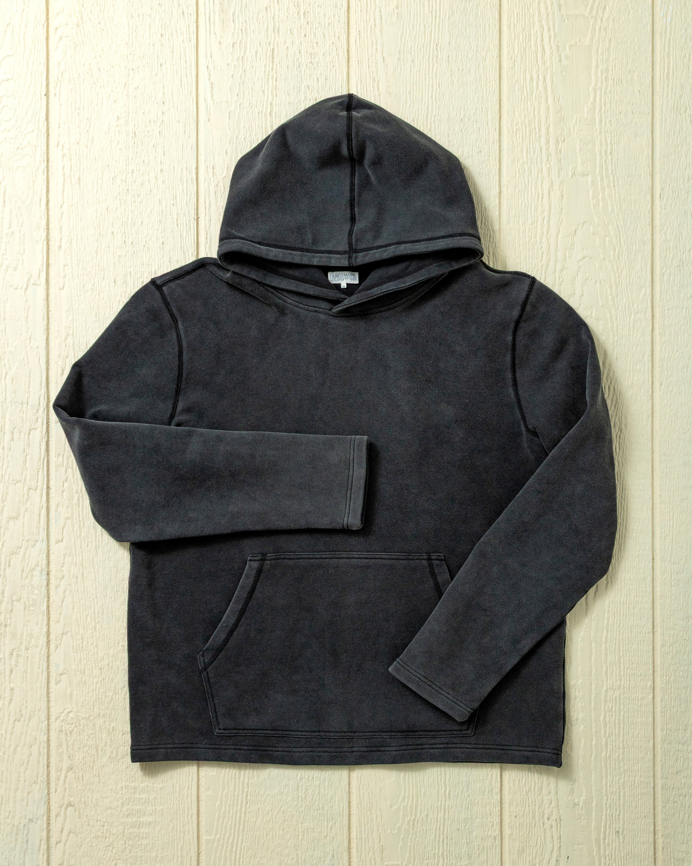 The Wharf Hoodie is an all-day all-season companion that will take you from your morning surf commute to a sunset beach bonfire with ease. Made in our iconic rugby-weight Salt Washed cotton fabric for a well-worn feel from day 1. Complete with a front kangaroo pocket, relaxed open sleeve cuffs, and a perfect-fitting hood.