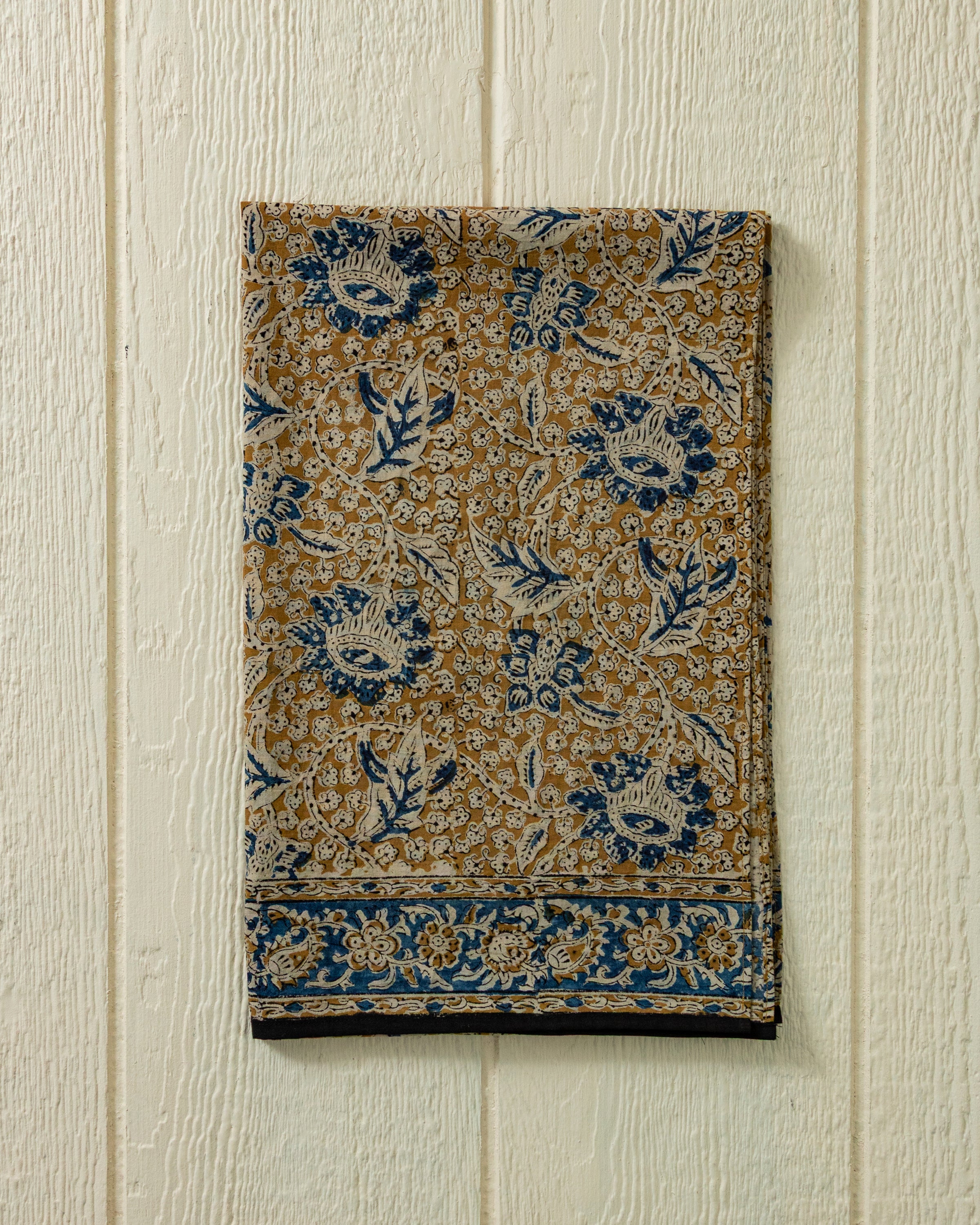 Made in India using centuries-old techniques, our collection of 100% cotton hand-blocked scarves are made using naturally derived dyes. Everything from indigo, henna, turmeric, pomegranate, jaggery and iron is used to create pigments that are then applied to the fabric one color at a time.