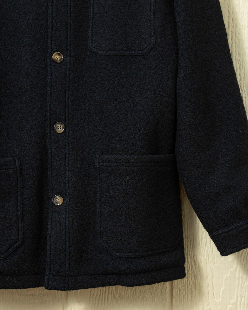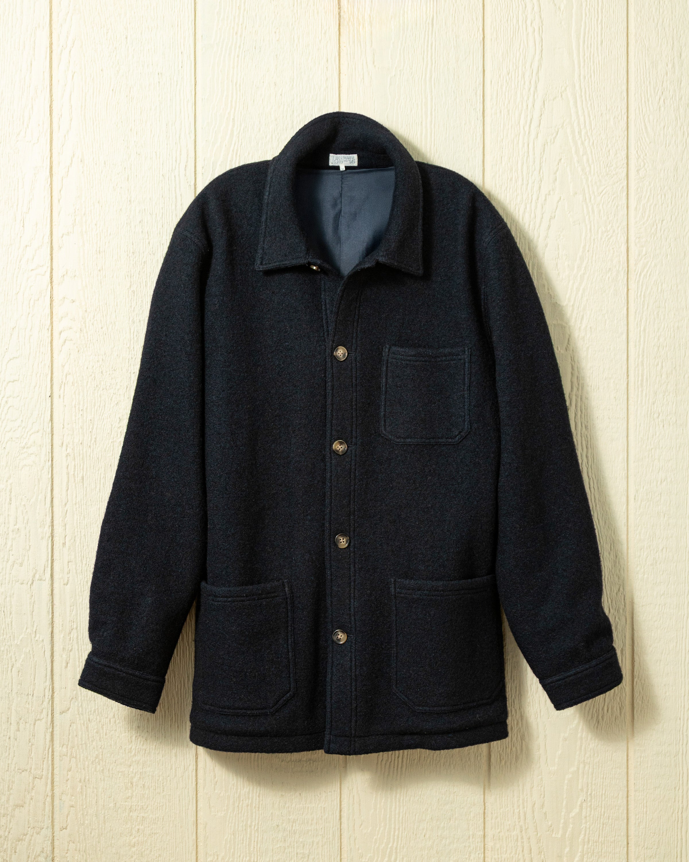 We made our iconic work jacket in felted wool, a sturdy but super soft wool blend. Easy to take care of and sharp as always-- the Felted Wool French Workman's Jacket is the all purpose outerwear you need this fall.