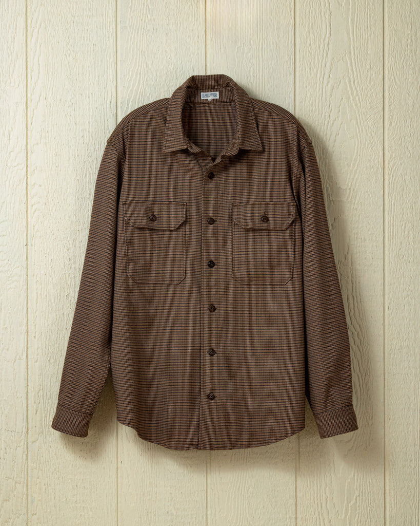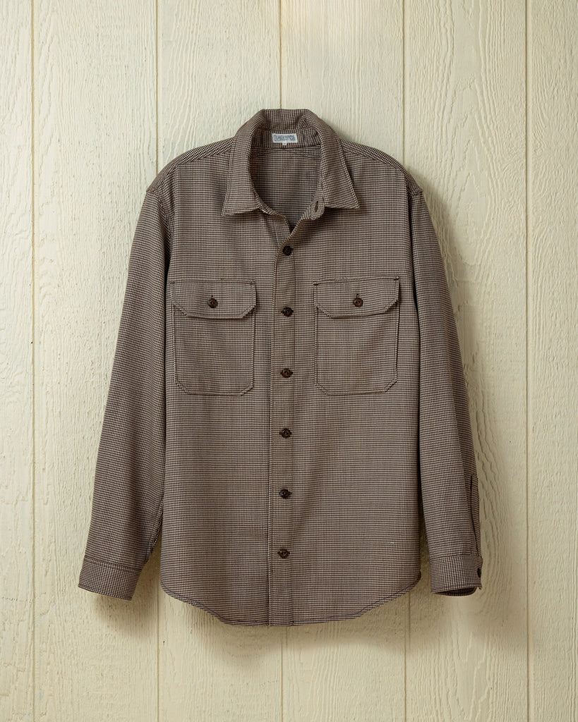 Superfine Wool MacArthur Shirt in Brown Houndstooth