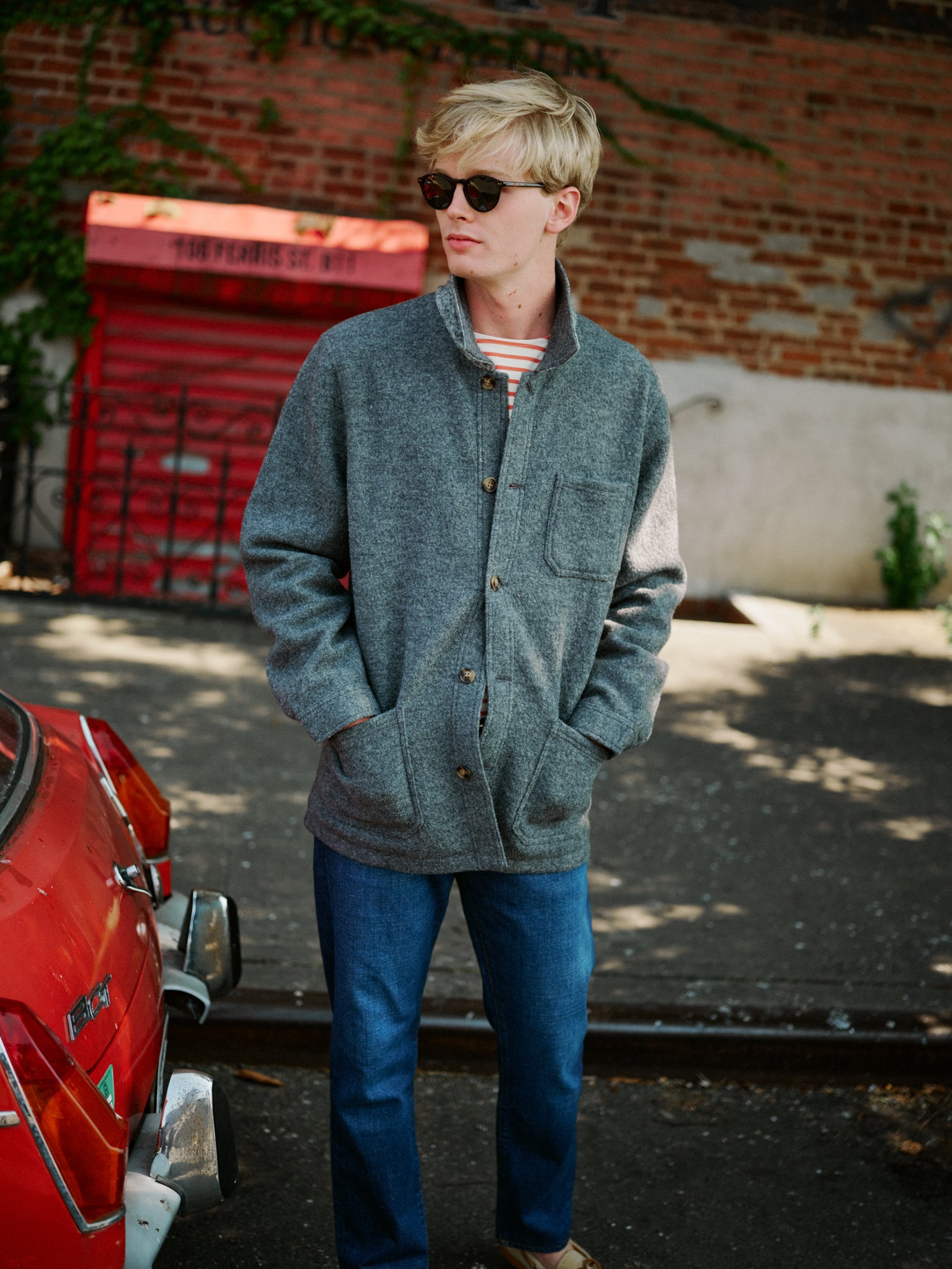 We made our iconic work jacket in felted wool, a sturdy but super soft wool blend. Easy to take care of and sharp as always-- the Felted Wool French Workman's Jacket is the all purpose outerwear you need this fall.