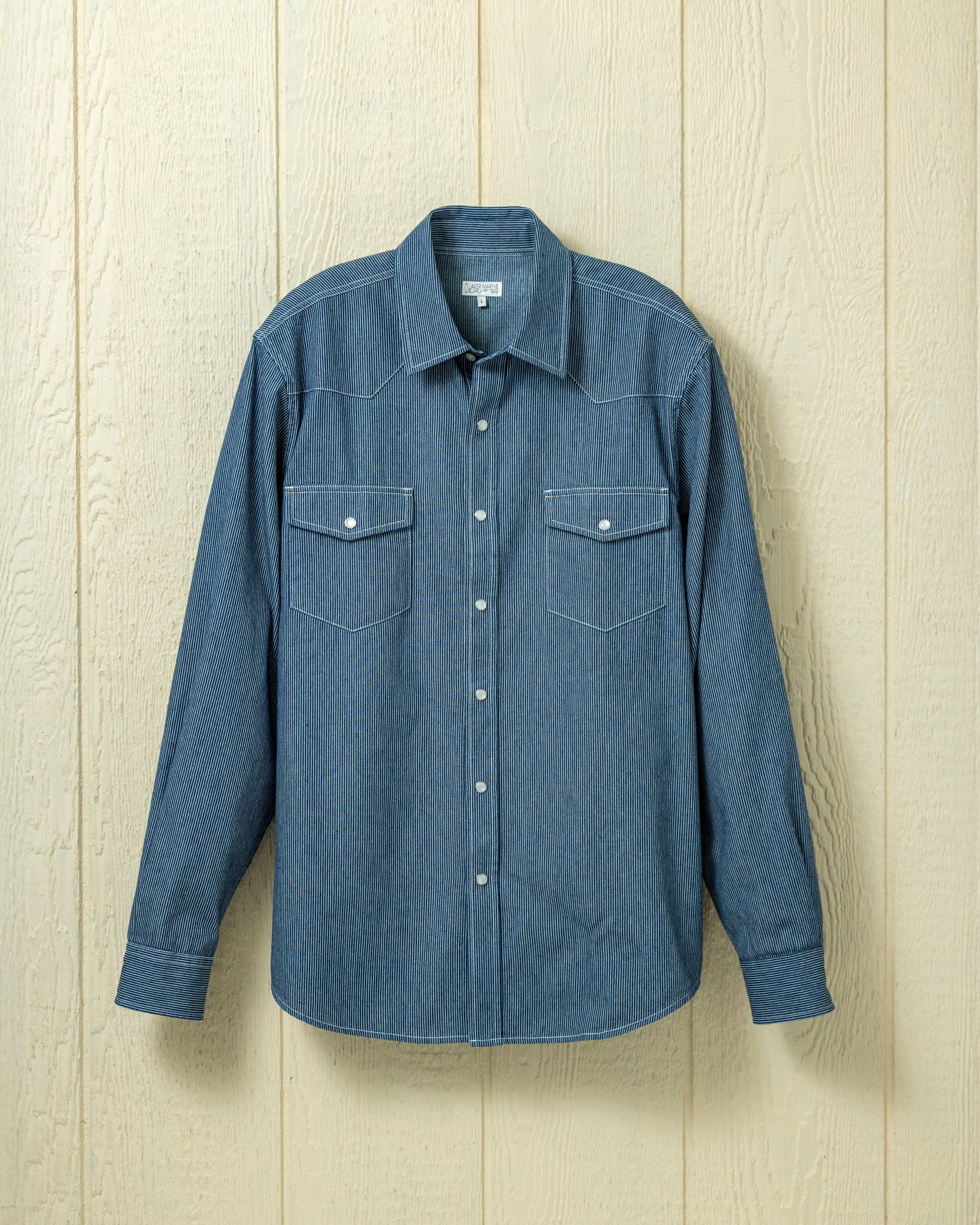 Western Shirt in Denim Blue Hickory Stripe