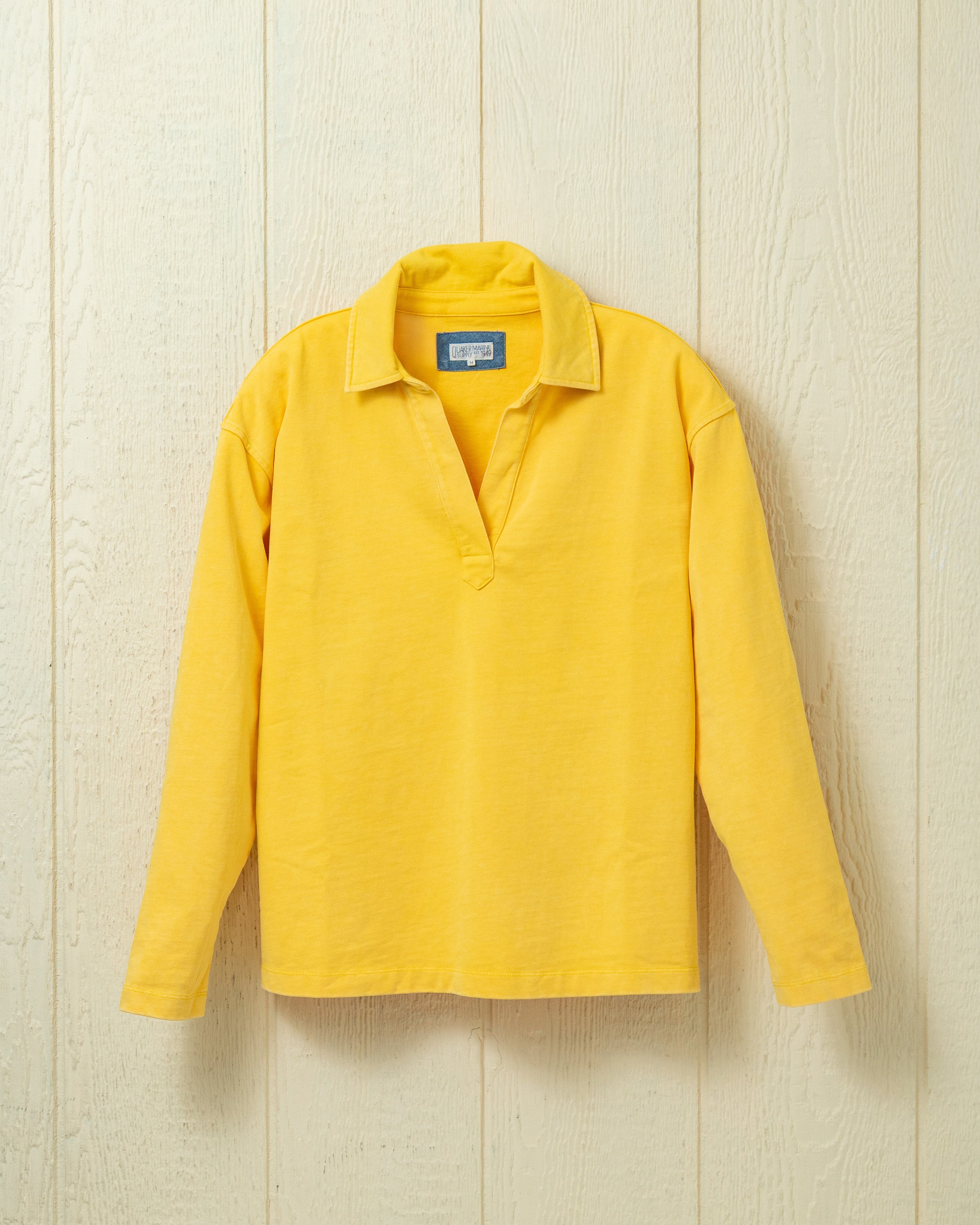Our Inlet Pullover's collared, v-neck design makes for a relaxed yet elevated look suited for just about any seaside escapade. It is made with rugby-weight cotton fabric, picked for its versatility as a shirt or a light alternative to a sweatshirt. Complete with carefully considered details like a chambray collar-backing.