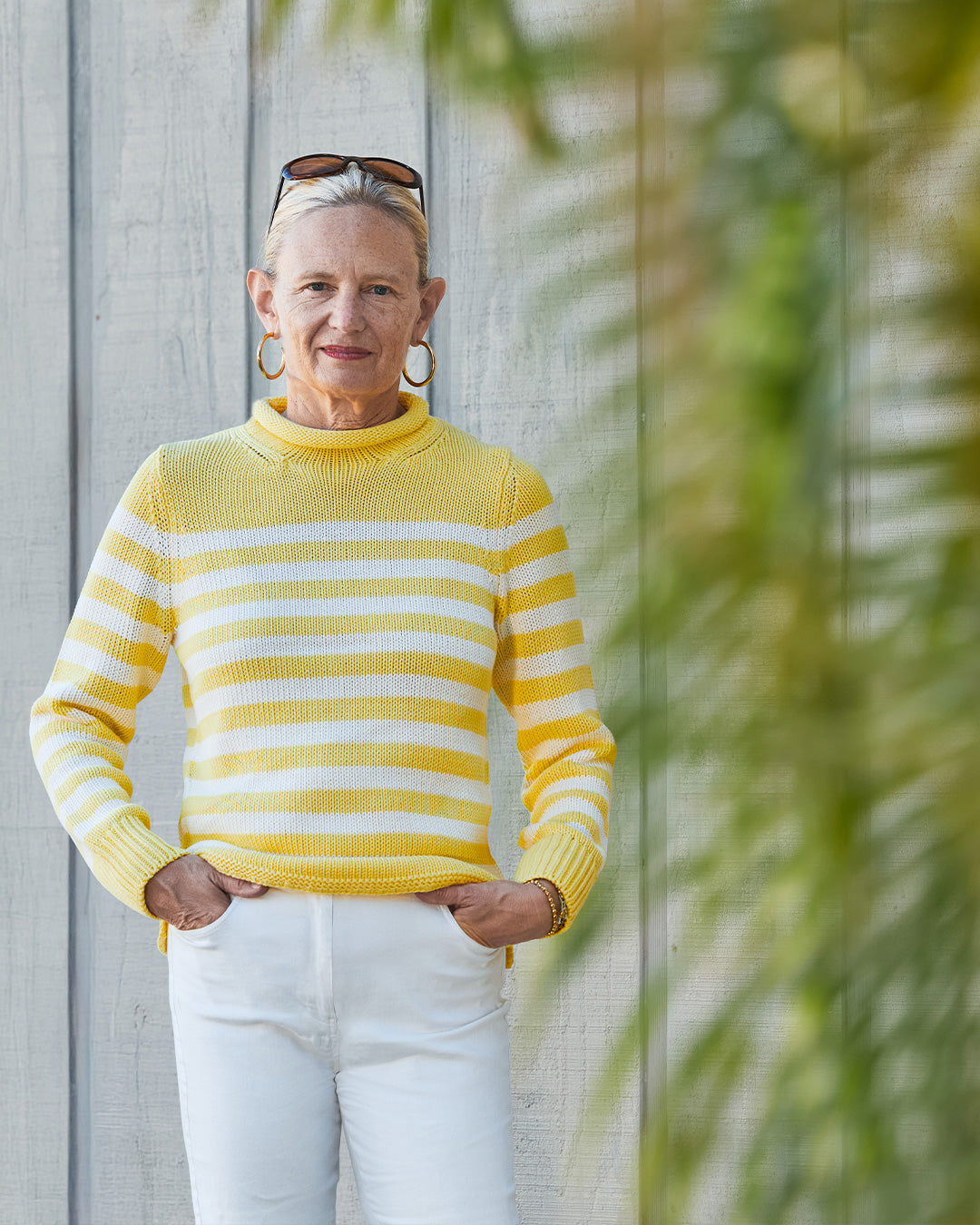 Women's Breton Stripe Fisherman's Sweater in Lemon/Egret