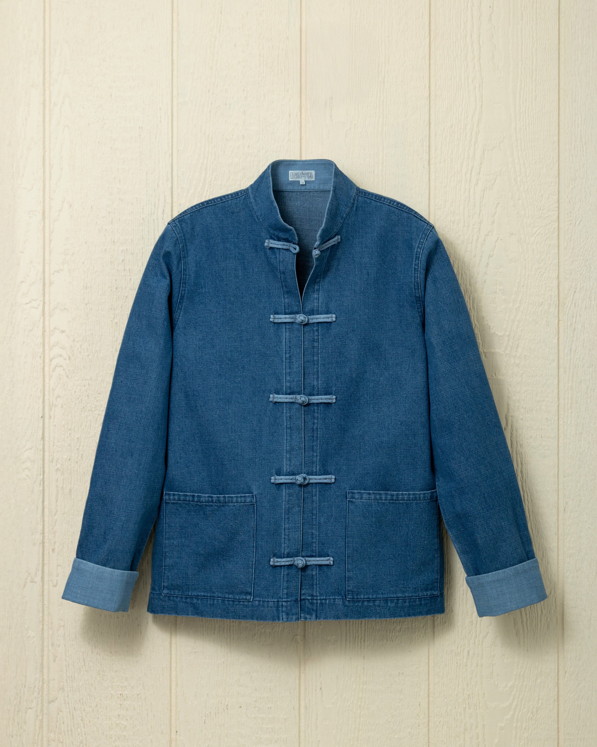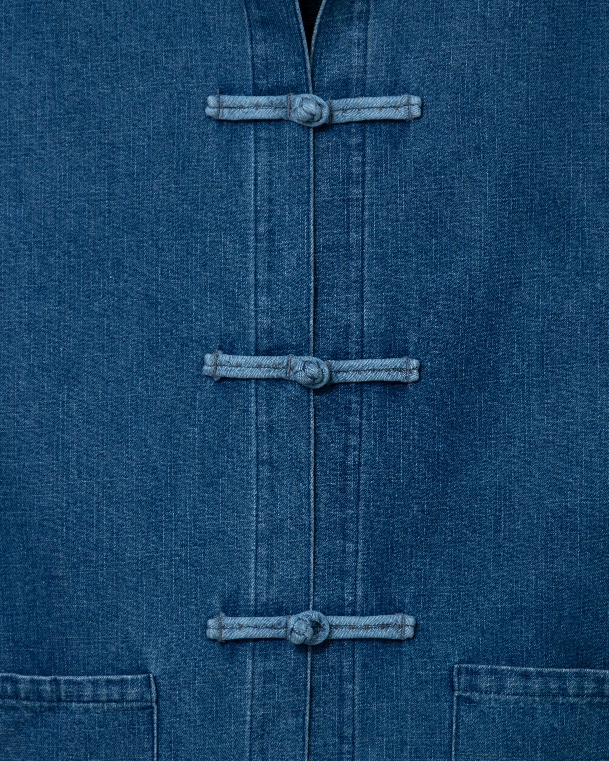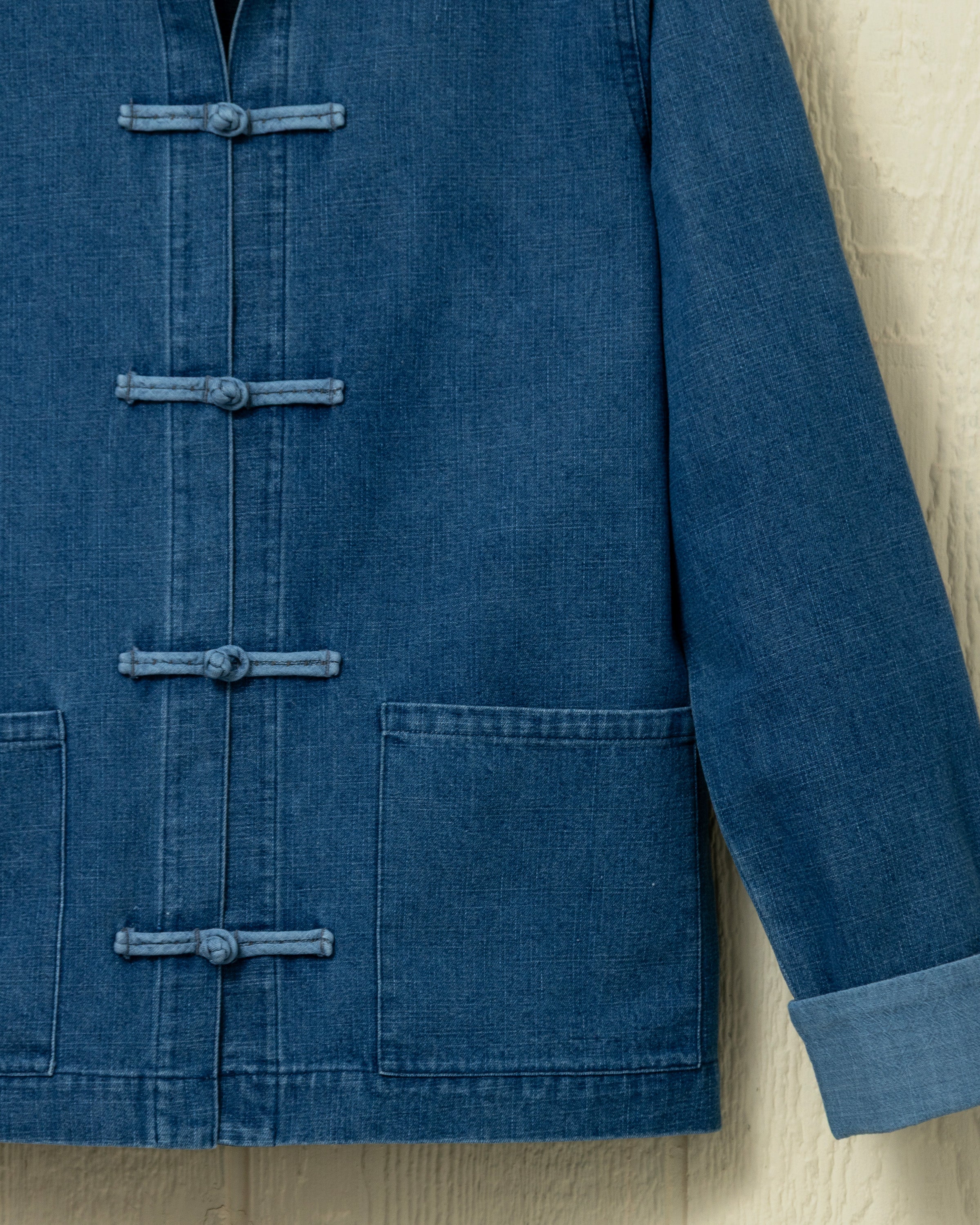 Our Denim Martinique Jacket is the perfect layer for spring. Its unique collar expression and knotted front closures make a statement without overdoing it. The Martinique featured carefully considered details like chambray-lined cuffs and two front patch pockets.