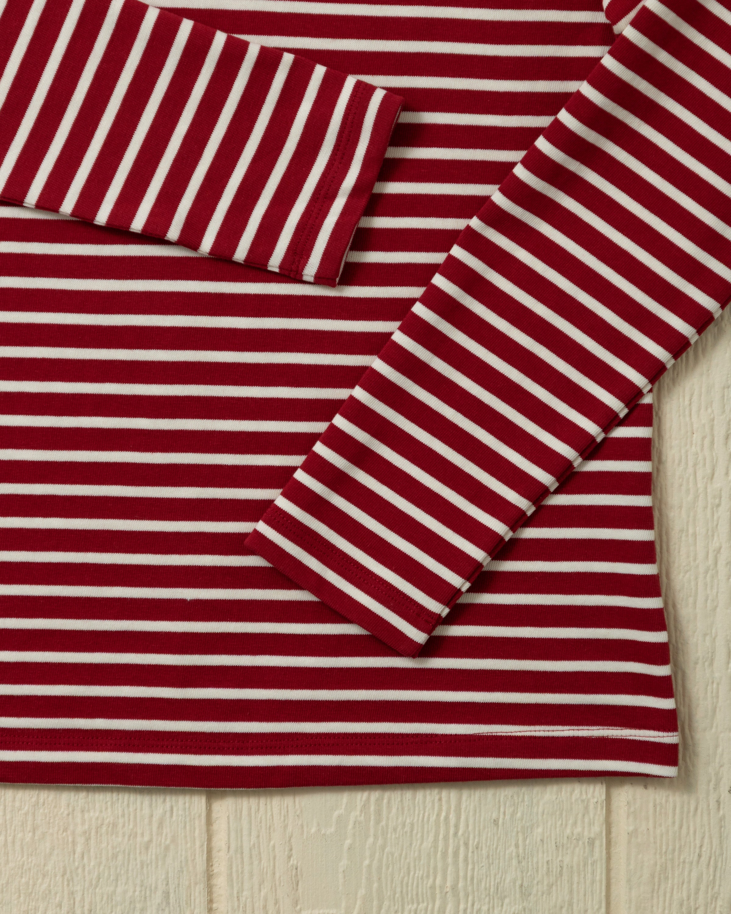 Our Calypso Turtleneck is a classic French maritime staple. It is made with a perfect-weight striped cotton and features a full turtleneck that can be worn up or rolled down. Pair with our Biscay Beret for the full effect.