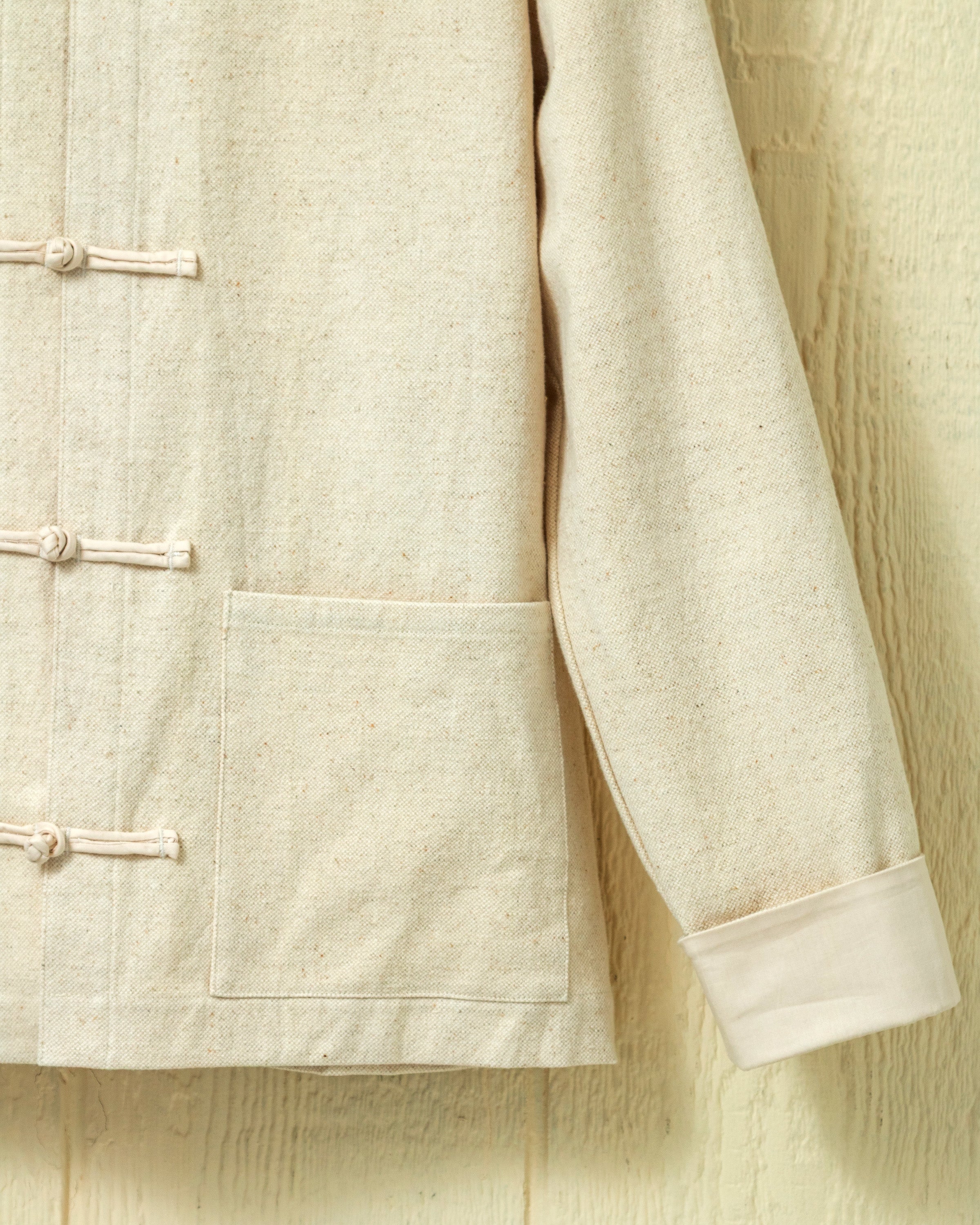 Our Linen & Cotton Martinique Jacket is the perfect layer for spring. Its unique collar expression and knotted front closures make a statement without overdoing it. The Martinique featured carefully considered details like lined cuffs and two front patch pockets.