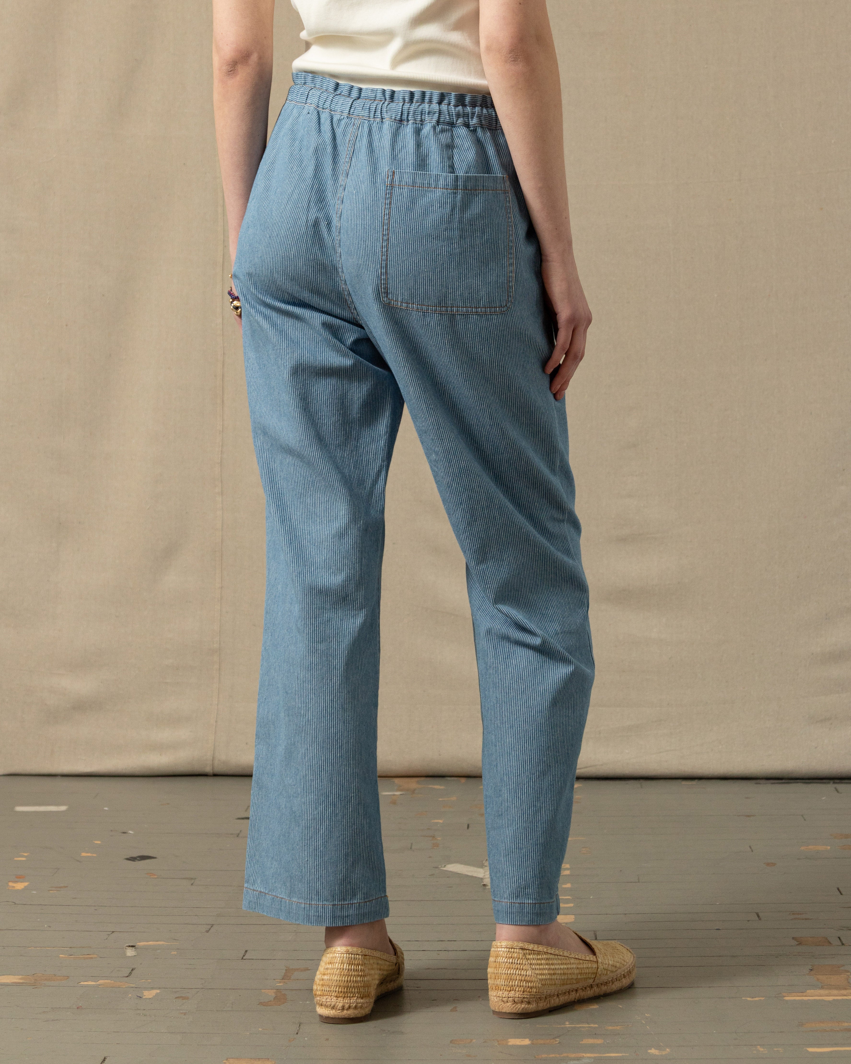 Women's Beach Pant in Denim Blue Hickory Stripe