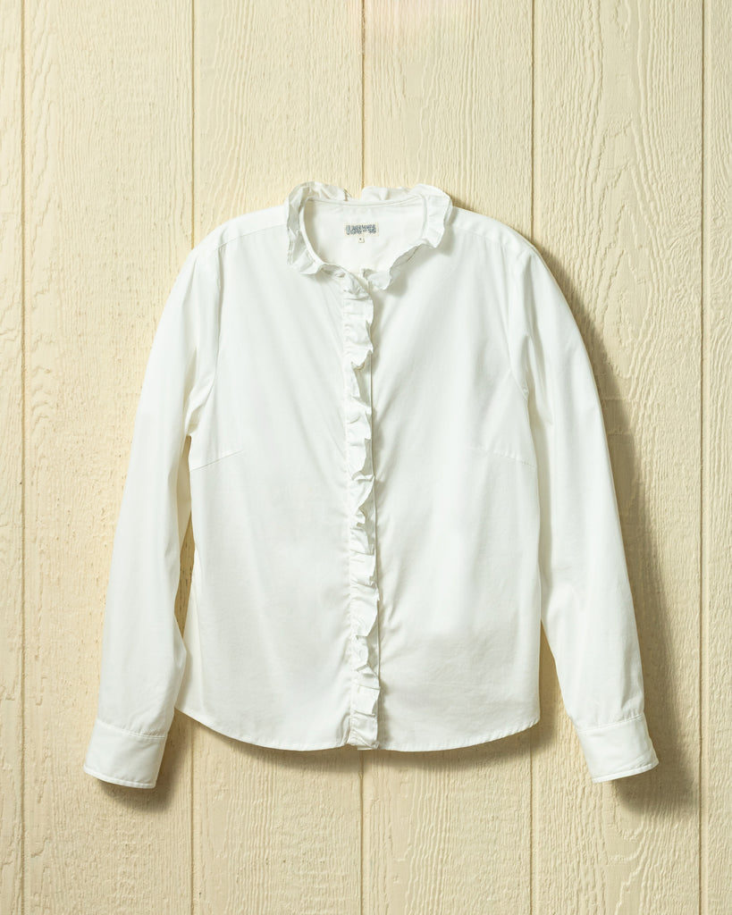 Ruffle Shirt in White Broadcloth