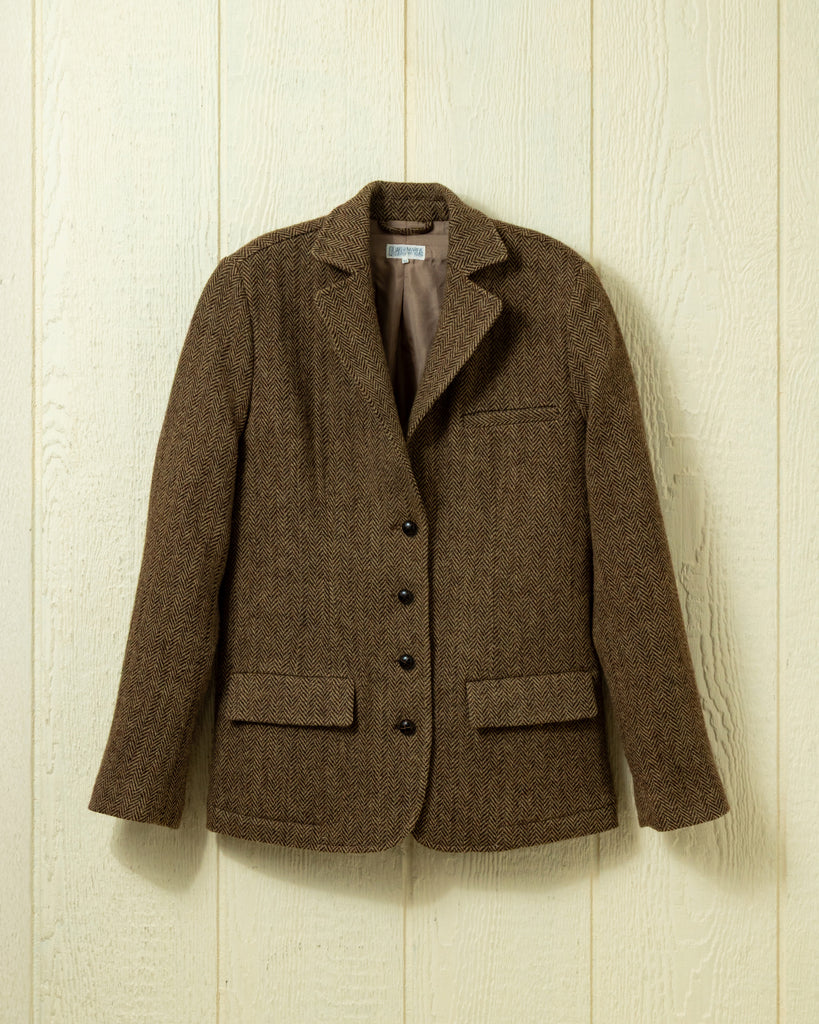 Borrowed from the boys, our Andover Tweed Blazer takes inspiration from classic menswear with an updated fit for her. Complete with 4 handmade leather buttons and welted flap pockets. Available in a range of herringbone tweeds.