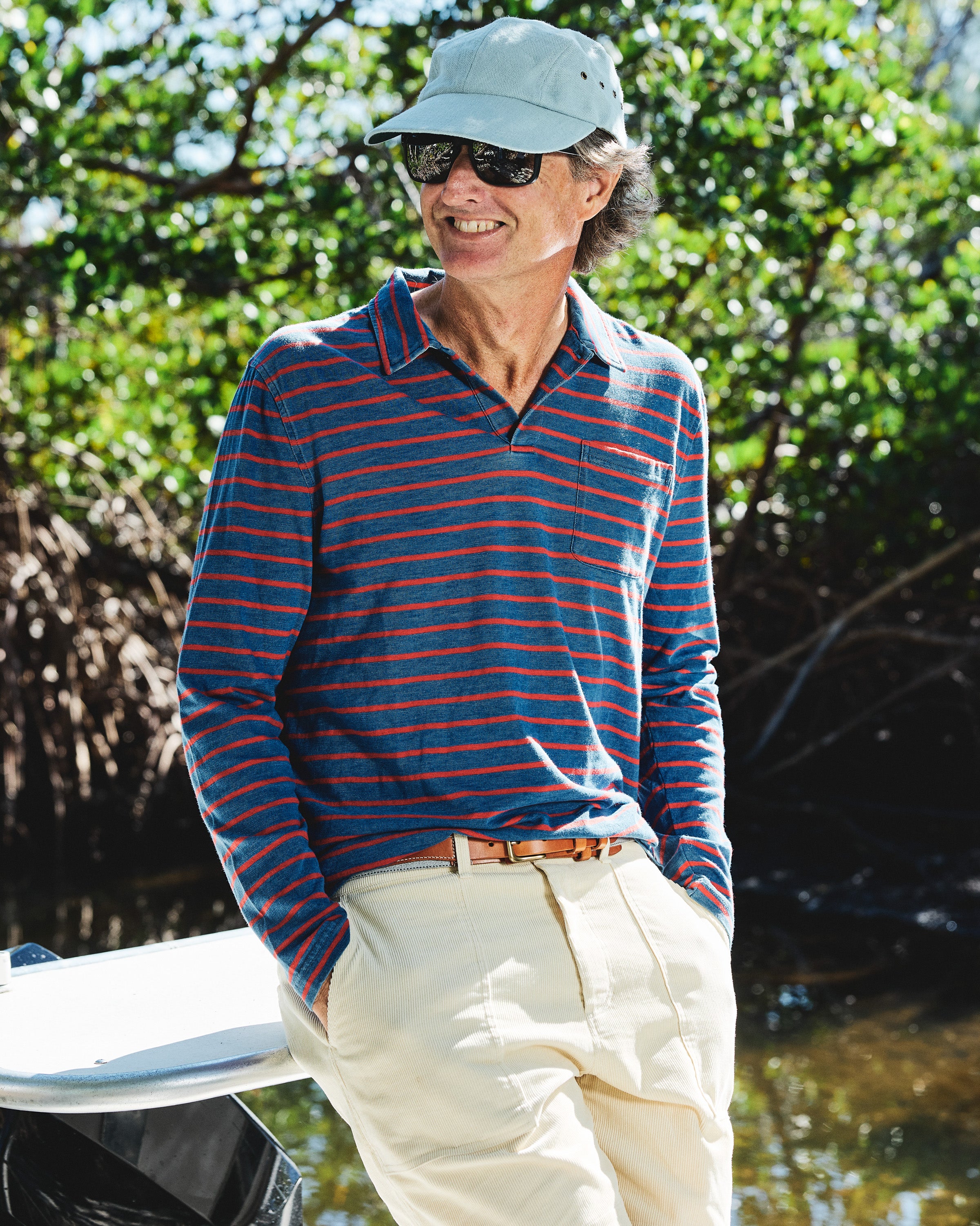 Our striped cotton long sleeve polo shirt will become your "go-to" for everyday wear, whether you're at sea or ashore. With a classic, but modern fit, it is universally comfortable and flattering. The unique one-button collar and placard roles to just the right stance. The body fits true to size and the sleeve is tailored to a perfect length. With a slightly weathered finish, our 100% indigo-dyed cotton will continue to fade and wear in beautifully over time.