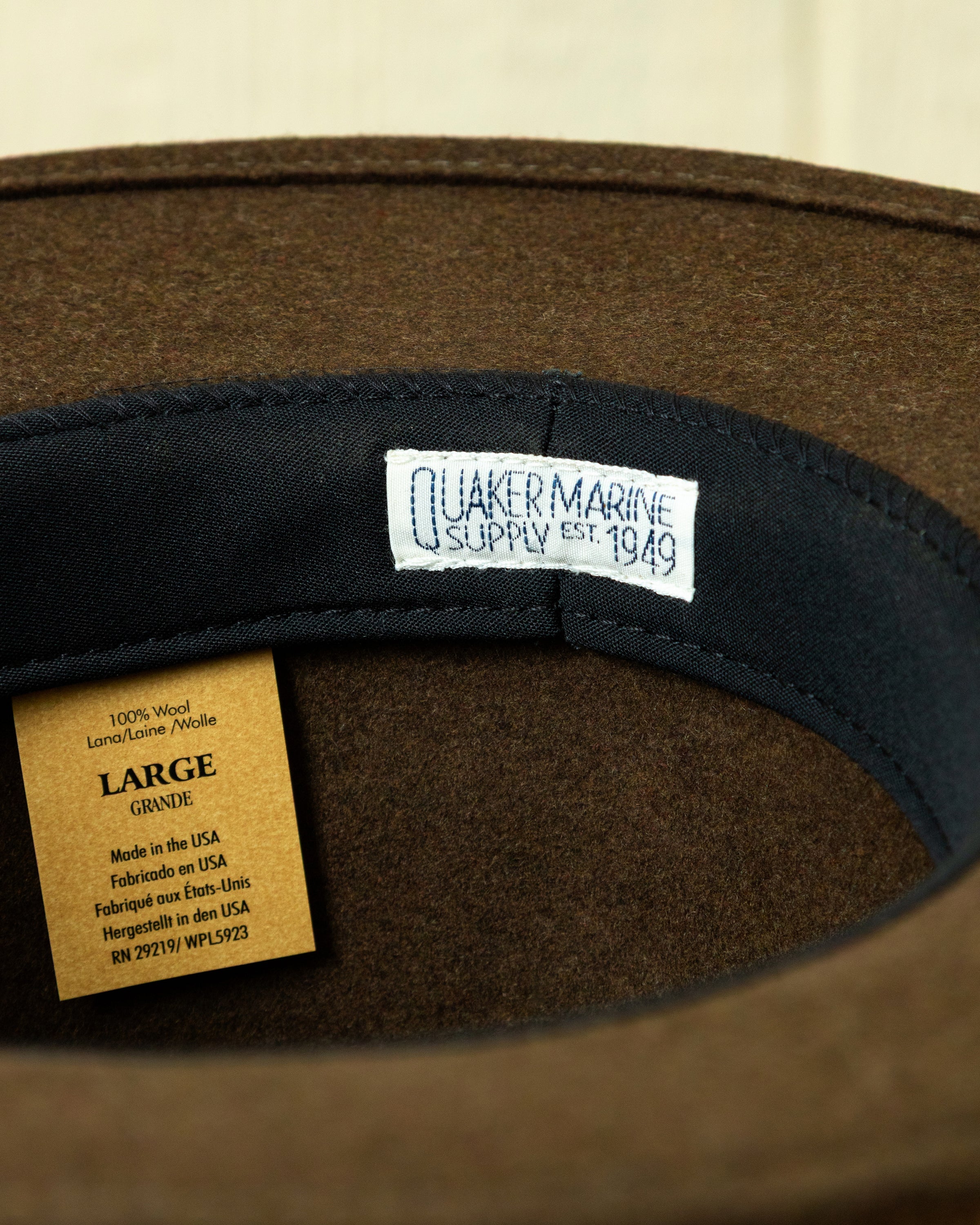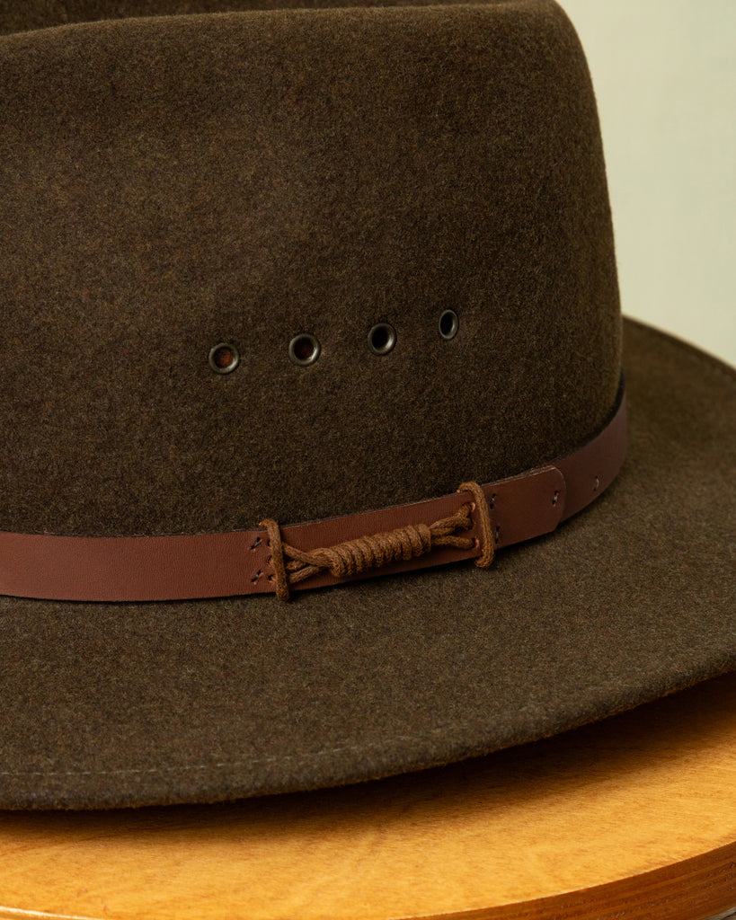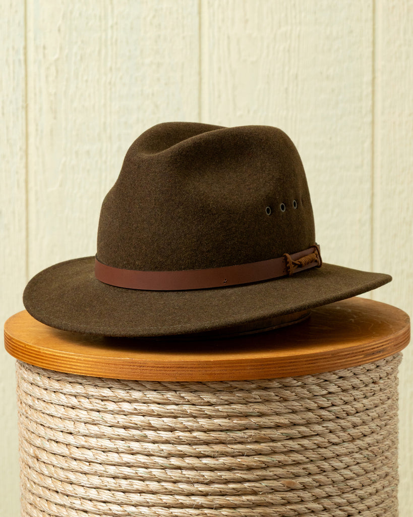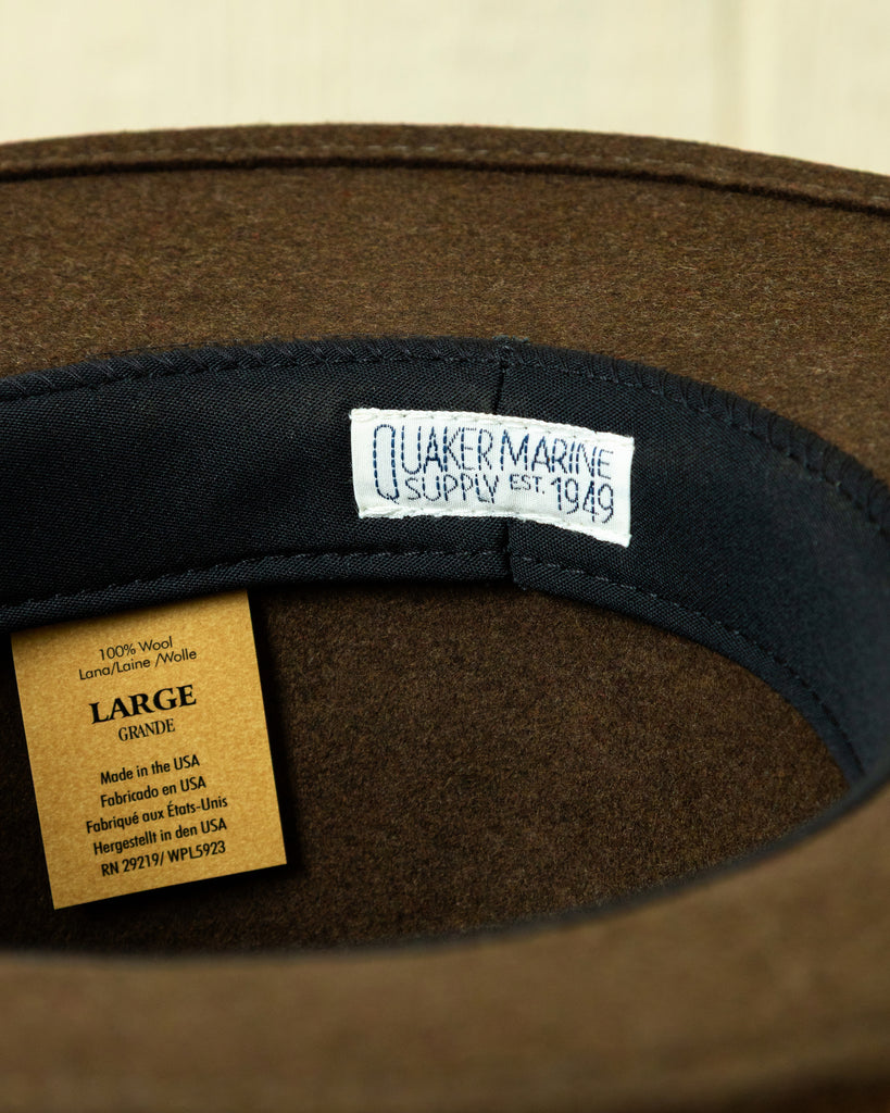 The Nairobi Wool Felt Hat is an original Quaker Marine hat, first developed decades ago by our founder Joe Kadison. We've revived this archive style and updated it with the finest wool felt. It is hand made in the USA and embellished with leather band and 3 eyelets for ventilation.