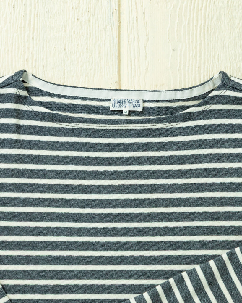 Women's Breton Stripe Boatneck Tee in Graphite/Off White